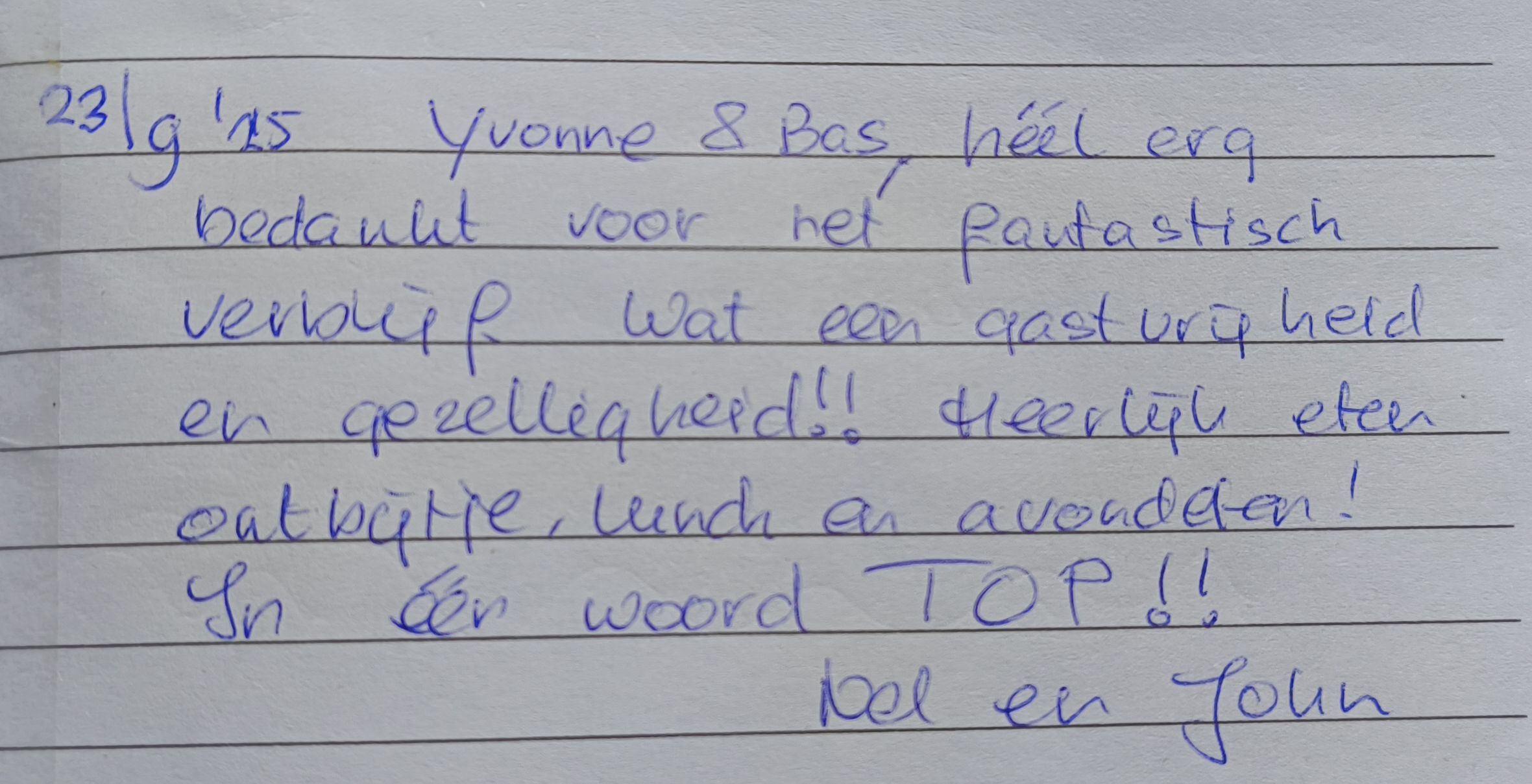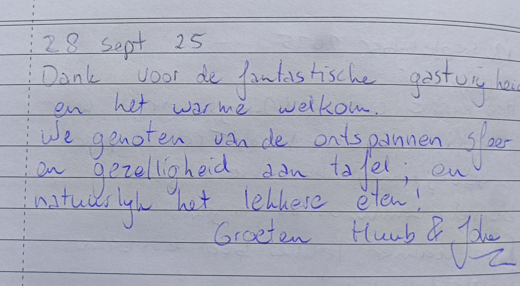 Wij verhuren de kamers inclusief ontbijt en een aantal keer per week kan er met ons meegegeten worden (alleen op verzoek).